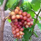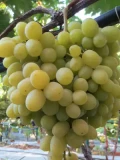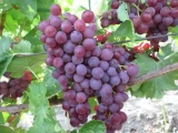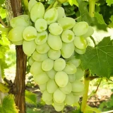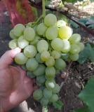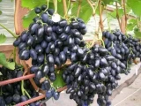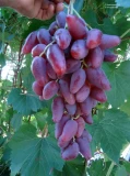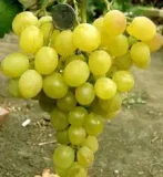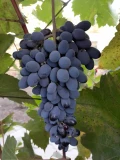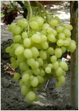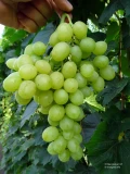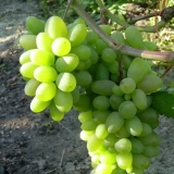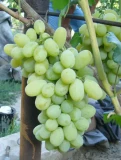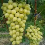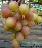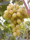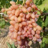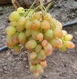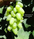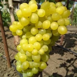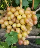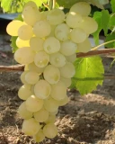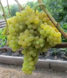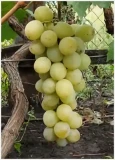 Столовый сорт, среднеспелый (115–125 дней), обладает обоеполыми цветками, что обеспечивает хорошее опыление. Грозди крупные, рыхлые, весом 600–1100 г.
