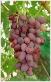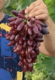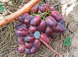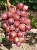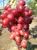 с очень крупной ягодой, насыщенным красным цветом и ярким мускатом. по 3 кисти на побег. Не трещит.