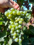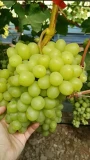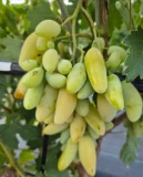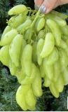 Желто-зеленые ягоды 17-22 гр., но длина свыше 50 мм., с небольшой ямкой. Мякоть хрустящая. Вкус гармоничный, сортовой с хорошим сахаронакоплением. После созревания начинают покрываться "загаром".