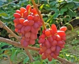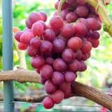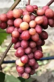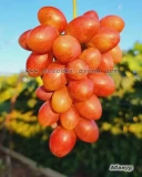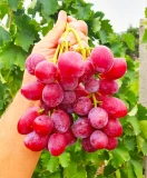 Суперранний сорт отличается крупными гроздями и ягодами насыщенного красного или рубинового цвета, весом 15-18 граммов, с ярко выраженным мускатным вкусом и хрустящей мякотью. "Красная Роза" ценится за высокую урожайность, устойчивость к растрескиванию и хорошую сохранность на кусте.