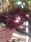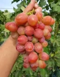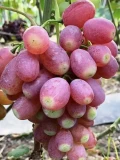 Ягоды очень крупные, 18-25 г. сливовидной формы. Вкус приятный, без муската. Мякоть, как говорят виноградари, сплошное «мясо» — очень плотная, хрустящая. Не трещит после дождя.