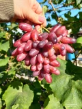 Примечание: Сорт столовый, раннего срока созревания (110–115 дней; сбор урожая — середина августа). Морозостойкость до –24 °C. Не растрескивается при дождях, устойчив к осам, обладает высокой транспортабельностью и привлекательным товарным видом. Подходит для выращивания в южных, центральных и даже северных регионах при условии укрытия на зиму. Характерная особенность — поникшие, «тряпичные» листья, что является сортовой чертой, а не признаком болезни.