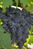 Ягоды овальные, очень крупные, 20 г, темно-бордового цвета, с плотной съедобной кожицей.